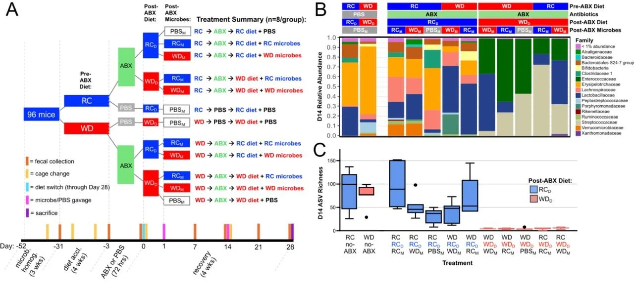 Kennedy MS, Freiburger A, Cooper M, Beilsmith K, St George ML, Kalski M, et al. Diet outperforms microbial transplant to drive microbiome recovery in mice. Nature. 2025;642(8068):747-55. doi:10.1038/s41586-025-08937-9.